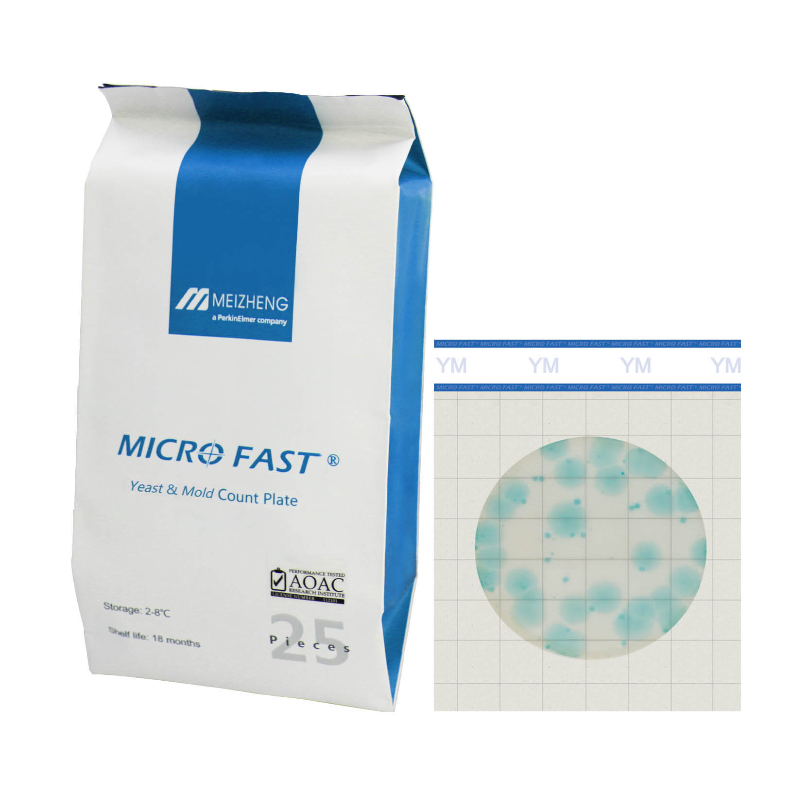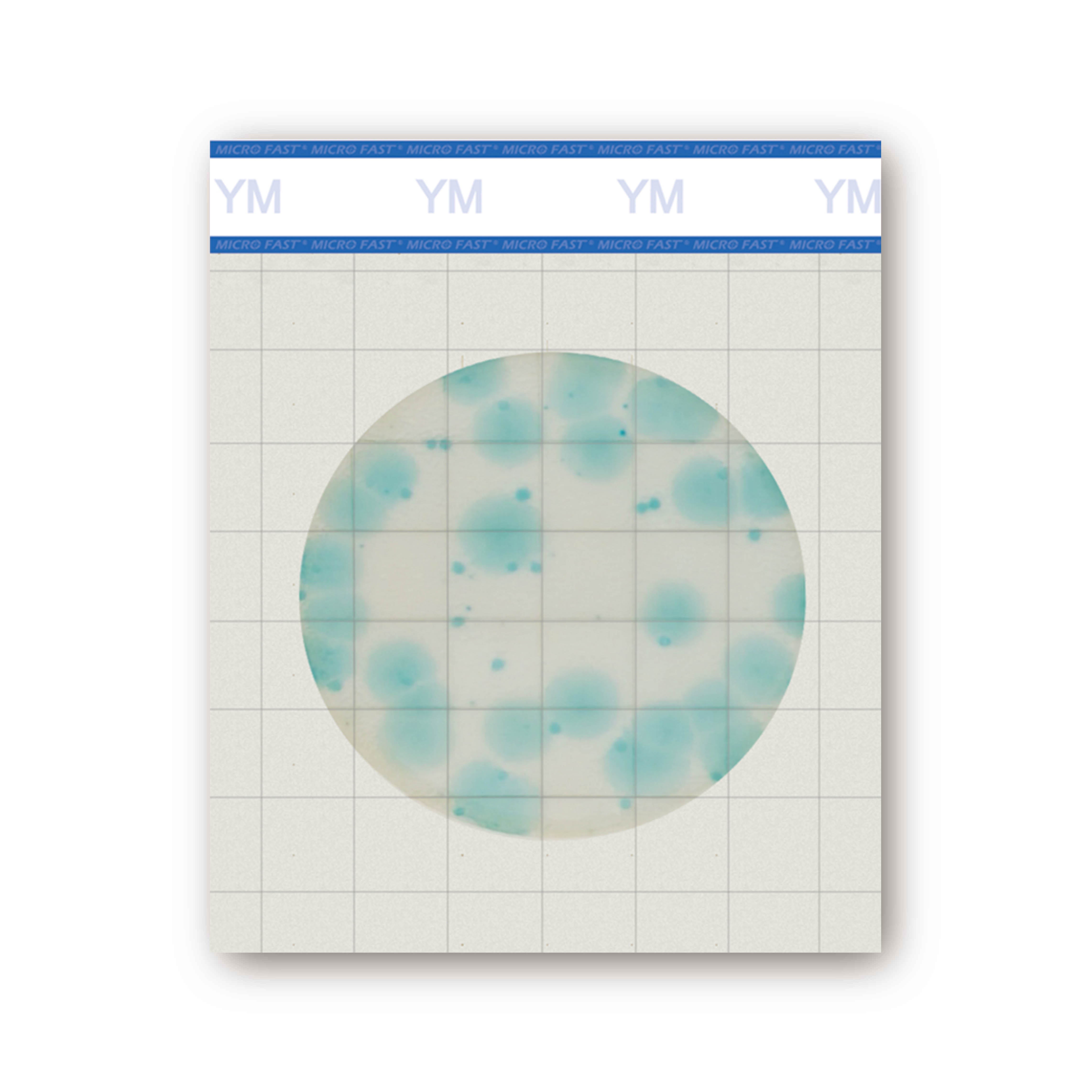 MicroFast®黴菌/酵母菌(Yeast&Mold,簡稱YM)快檢片為預制型培養基,内含改良的培養基,冷凝膠和指示劑,便於菌落計數,採用創新的冷水凝膠技術和新一代的微生物顯色技術,能夠讓菌落快速增殖並顯現顏色,並省去傳統培養基配置流程,製程符合ISO9001品質管理系統,產品通過美國AOAC國際公定分析化學家協會認證,適用於各類食品、食品原料及環境...等中黴菌/酵母菌的測定。